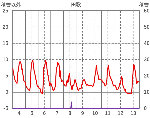 | 日 | 時 | 気温 | 降水 | 風向/風速 | 日照 | 積雪 | 降雪 |