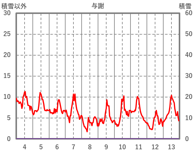 | 日 | 時 | 気温 | 降水 | 風向/風速 | 日照 | 積雪 | 降雪 |
