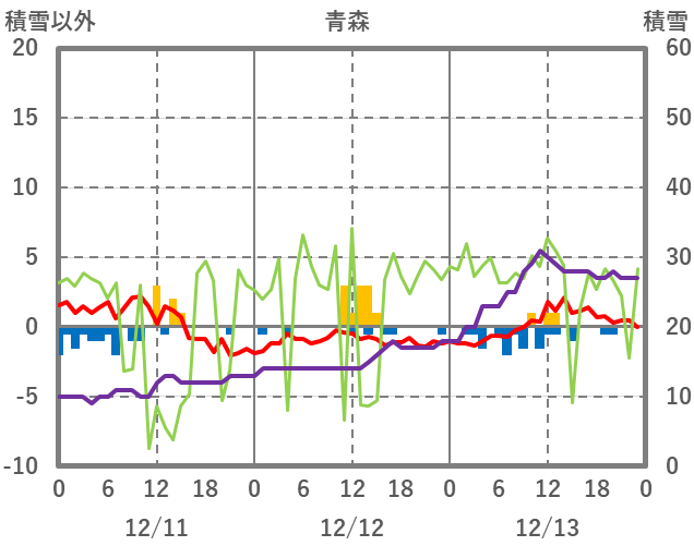 | 日 | 時 | 気温 | 降水 | 風向/風速 | 日照 | 積雪 | 降雪 |