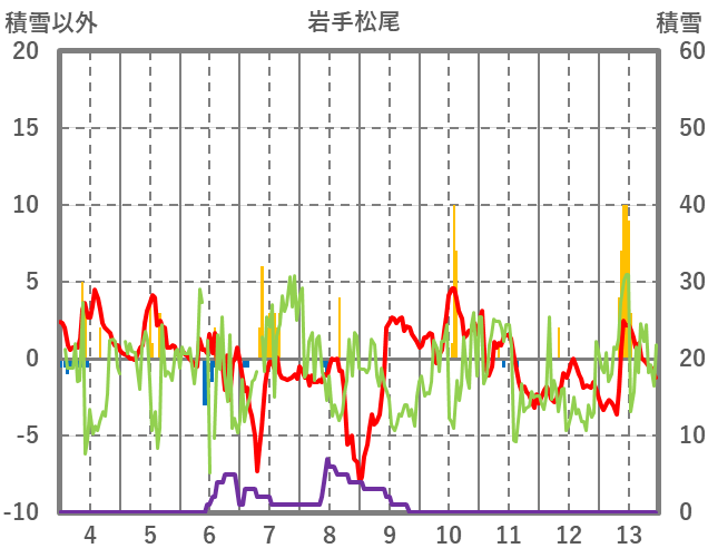 | 日 | 時 | 気温 | 降水 | 風向/風速 | 日照 | 積雪 | 降雪 |