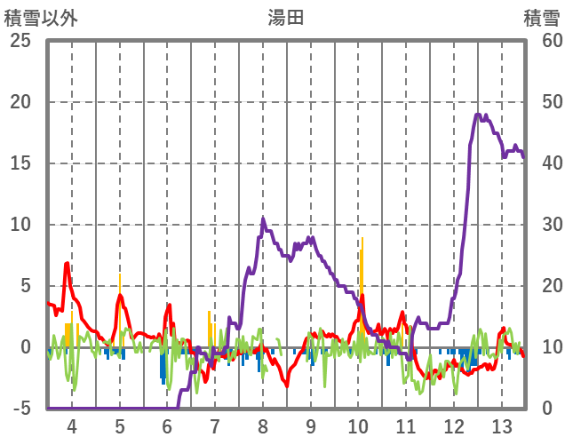 | 日 | 時 | 気温 | 降水 | 風向/風速 | 日照 | 積雪 | 降雪 |
