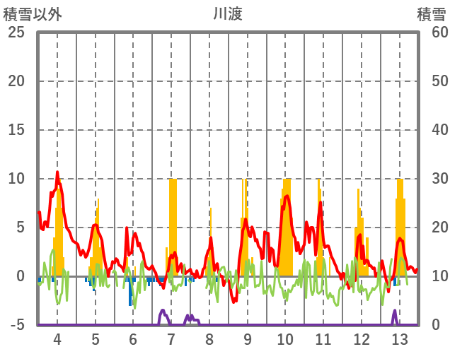 | 日 | 時 | 気温 | 降水 | 風向/風速 | 日照 | 積雪 | 降雪 |