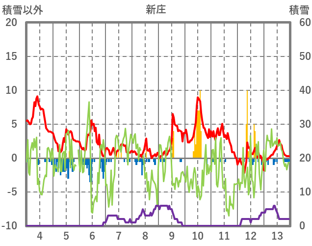 | 日 | 時 | 気温 | 降水 | 風向/風速 | 日照 | 積雪 | 降雪 |
