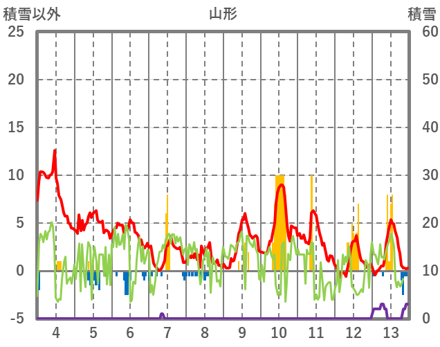 | 日 | 時 | 気温 | 降水 | 風向/風速 | 日照 | 積雪 | 降雪 |