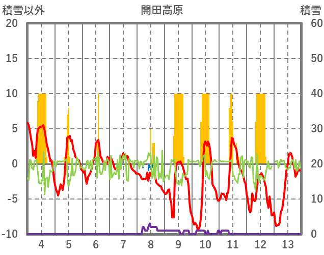 | 日 | 時 | 気温 | 降水 | 風向/風速 | 日照 | 積雪 | 降雪 |