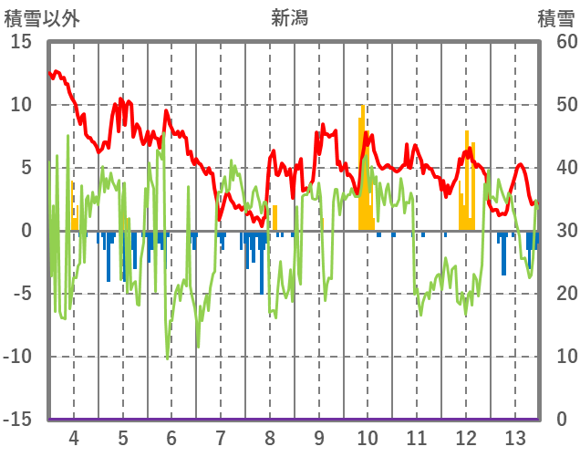 | 日 | 時 | 気温 | 降水 | 風向/風速 | 日照 | 積雪 | 降雪 |