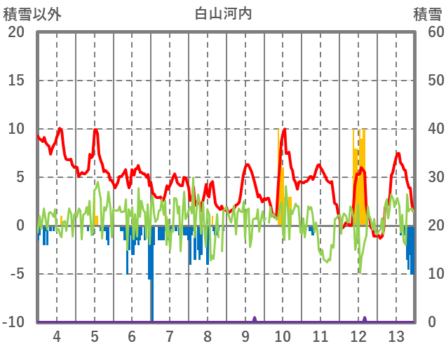 | 日 | 時 | 気温 | 降水 | 風向/風速 | 日照 | 積雪 | 降雪 |