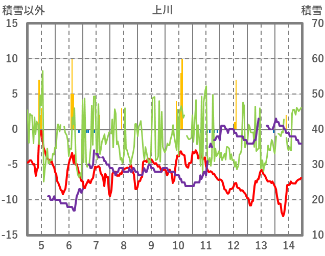 | 日 | 時 | 気温 | 降水 | 風向/風速 | 日照 | 積雪 | 降雪 |