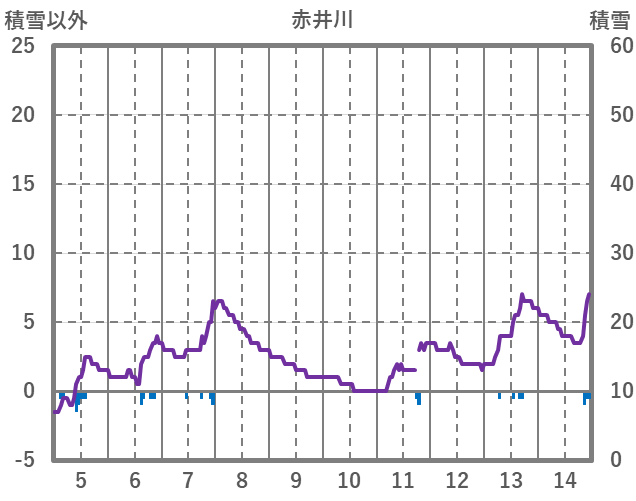 | 日 | 時 | 気温 | 降水 | 風向/風速 | 日照 | 積雪 | 降雪 |