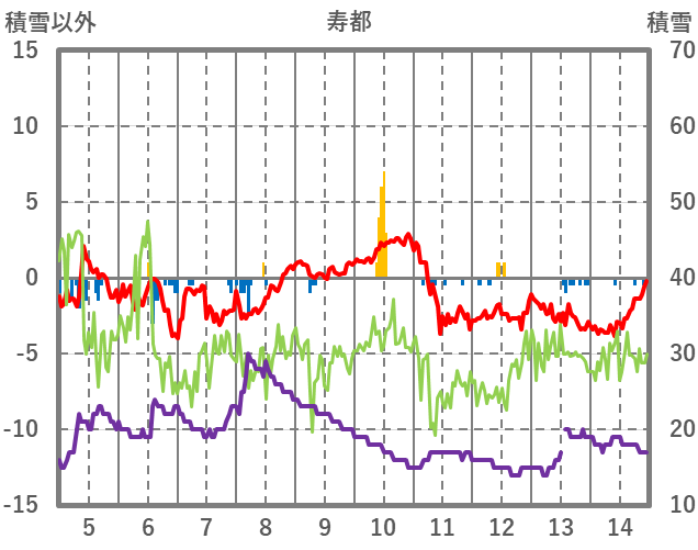 | 日 | 時 | 気温 | 降水 | 風向/風速 | 日照 | 積雪 | 降雪 |
