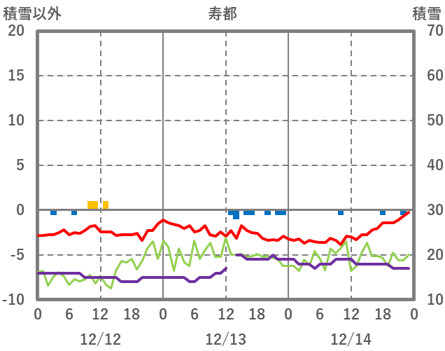 | 日 | 時 | 気温 | 降水 | 風向/風速 | 日照 | 積雪 | 降雪 |