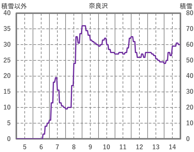 | 日 | 時 | 気温 | 降水 | 風向/風速 | 日照 | 積雪 | 降雪 |