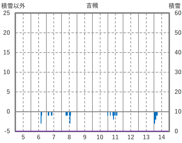 | 日 | 時 | 気温 | 降水 | 風向/風速 | 日照 | 積雪 | 降雪 |