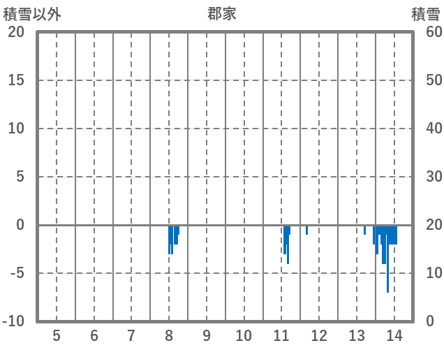 | 日 | 時 | 気温 | 降水 | 風向/風速 | 日照 | 積雪 | 降雪 |