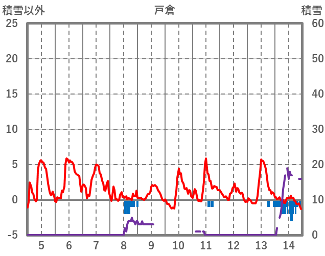 | 日 | 時 | 気温 | 降水 | 風向/風速 | 日照 | 積雪 | 降雪 |