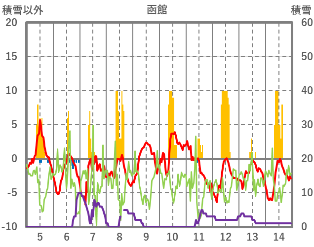 | 日 | 時 | 気温 | 降水 | 風向/風速 | 日照 | 積雪 | 降雪 |
