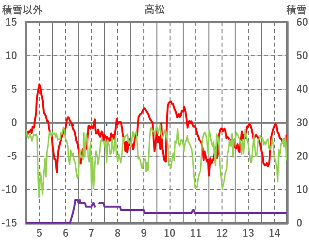 | 日 | 時 | 気温 | 降水 | 風向/風速 | 日照 | 積雪 | 降雪 |