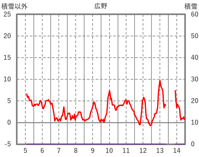| 日 | 時 | 気温 | 降水 | 風向/風速 | 日照 | 積雪 | 降雪 |