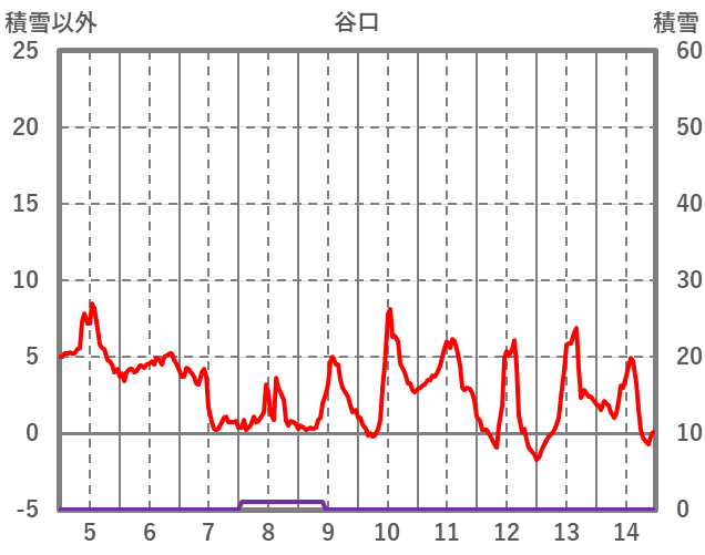 | 日 | 時 | 気温 | 降水 | 風向/風速 | 日照 | 積雪 | 降雪 |