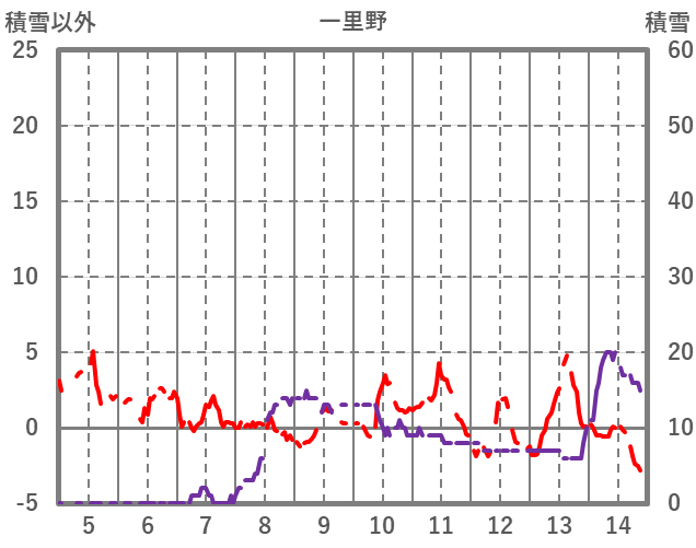 | 日 | 時 | 気温 | 降水 | 風向/風速 | 日照 | 積雪 | 降雪 |