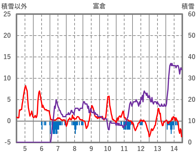 | 日 | 時 | 気温 | 降水 | 風向/風速 | 日照 | 積雪 | 降雪 |