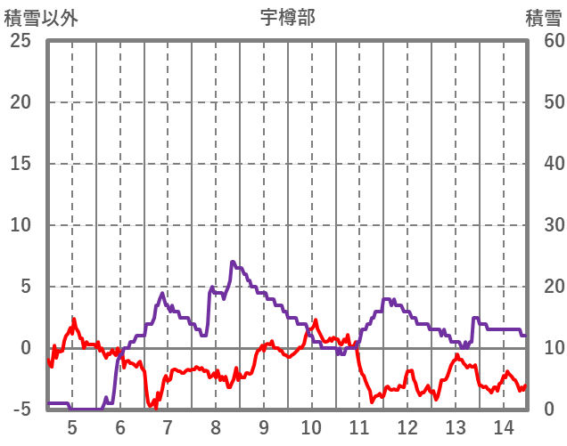 | 日 | 時 | 気温 | 降水 | 風向/風速 | 日照 | 積雪 | 降雪 |