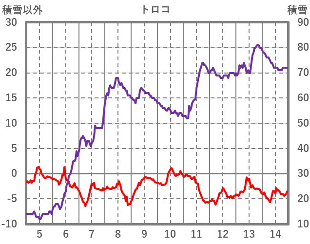 | 日 | 時 | 気温 | 降水 | 風向/風速 | 日照 | 積雪 | 降雪 |