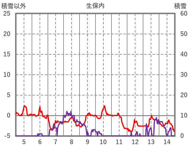 | 日 | 時 | 気温 | 降水 | 風向/風速 | 日照 | 積雪 | 降雪 |