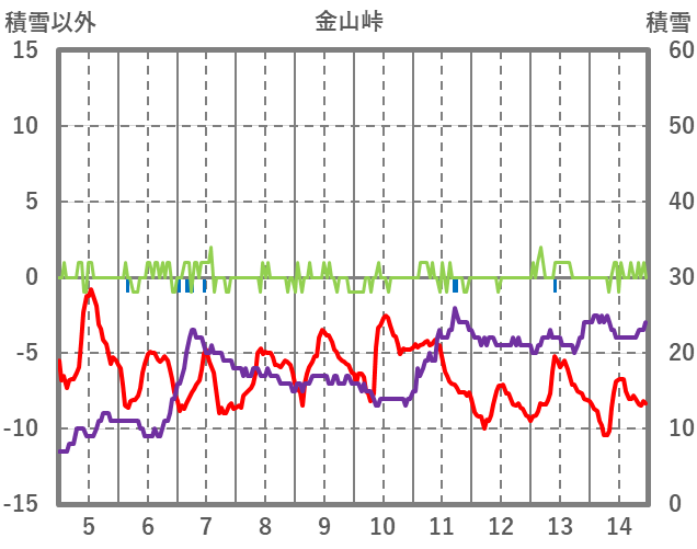 | 日 | 時 | 気温 | 降水 | 風向/風速 | 日照 | 積雪 | 降雪 |