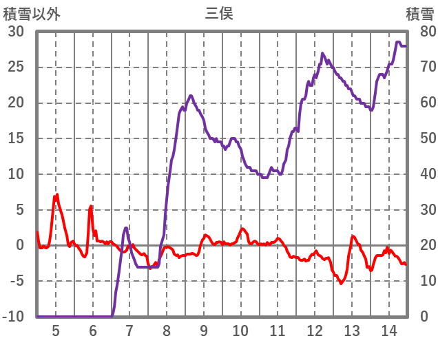 | 日 | 時 | 気温 | 降水 | 風向/風速 | 日照 | 積雪 | 降雪 |
