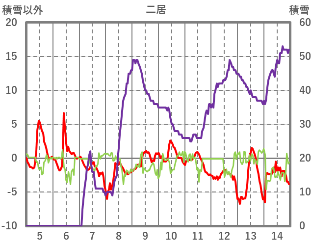 | 日 | 時 | 気温 | 降水 | 風向/風速 | 日照 | 積雪 | 降雪 |