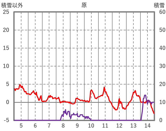| 日 | 時 | 気温 | 降水 | 風向/風速 | 日照 | 積雪 | 降雪 |
