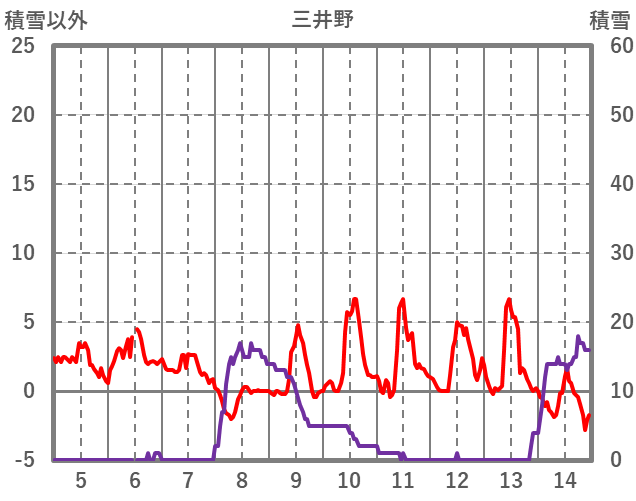 | 日 | 時 | 気温 | 降水 | 風向/風速 | 日照 | 積雪 | 降雪 |