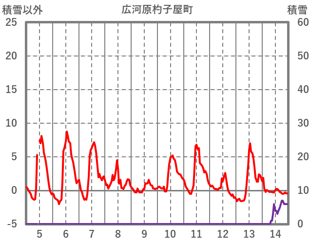 | 日 | 時 | 気温 | 降水 | 風向/風速 | 日照 | 積雪 | 降雪 |