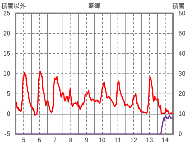 | 日 | 時 | 気温 | 降水 | 風向/風速 | 日照 | 積雪 | 降雪 |