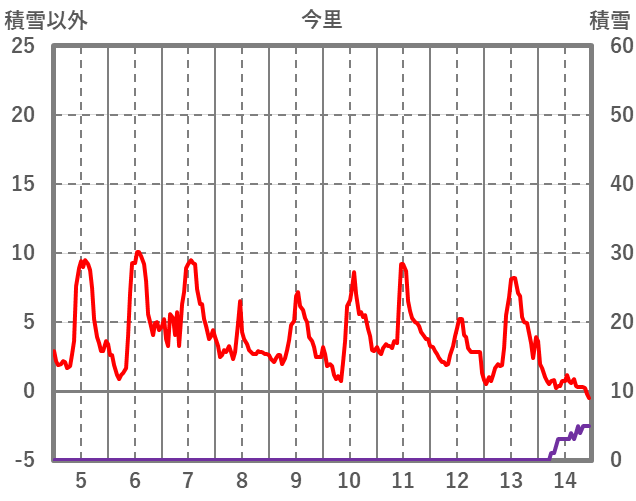 | 日 | 時 | 気温 | 降水 | 風向/風速 | 日照 | 積雪 | 降雪 |