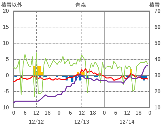 | 日 | 時 | 気温 | 降水 | 風向/風速 | 日照 | 積雪 | 降雪 |
