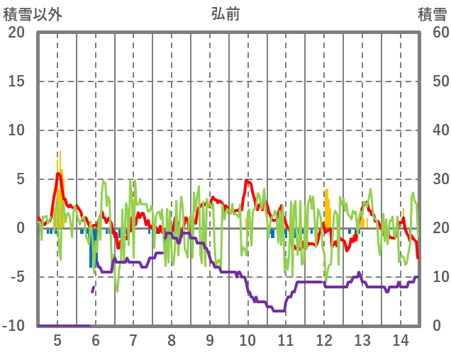 | 日 | 時 | 気温 | 降水 | 風向/風速 | 日照 | 積雪 | 降雪 |