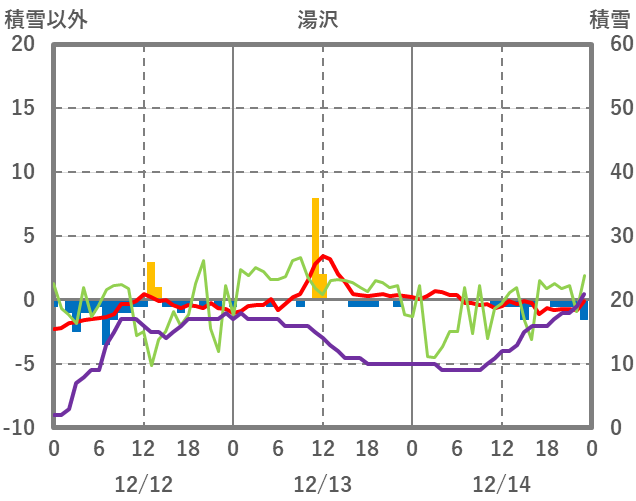 | 日 | 時 | 気温 | 降水 | 風向/風速 | 日照 | 積雪 | 降雪 |