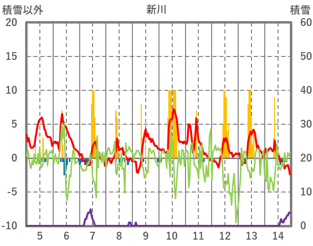 | 日 | 時 | 気温 | 降水 | 風向/風速 | 日照 | 積雪 | 降雪 |