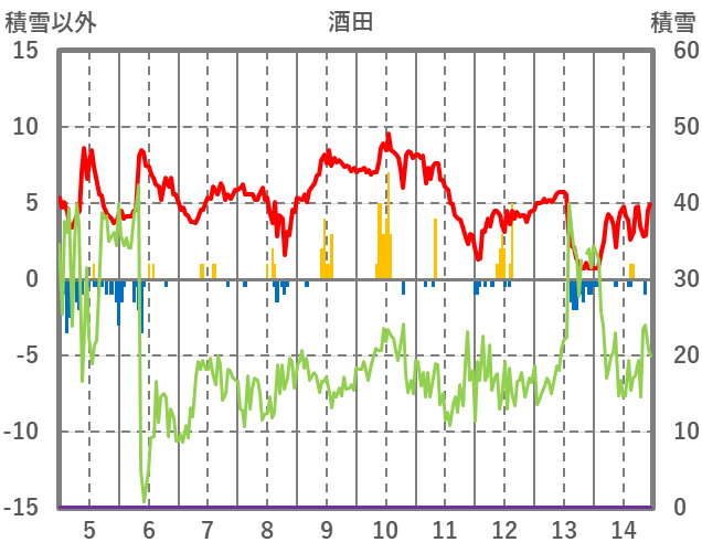 | 14 | 7.4 | 0.5 | WNW/4.3 | 6 | 0 | ||