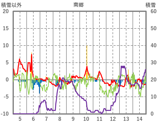 | 日 | 時 | 気温 | 降水 | 風向/風速 | 日照 | 積雪 | 降雪 |