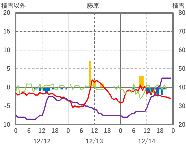 | 日 | 時 | 気温 | 降水 | 風向/風速 | 日照 | 積雪 | 降雪 |