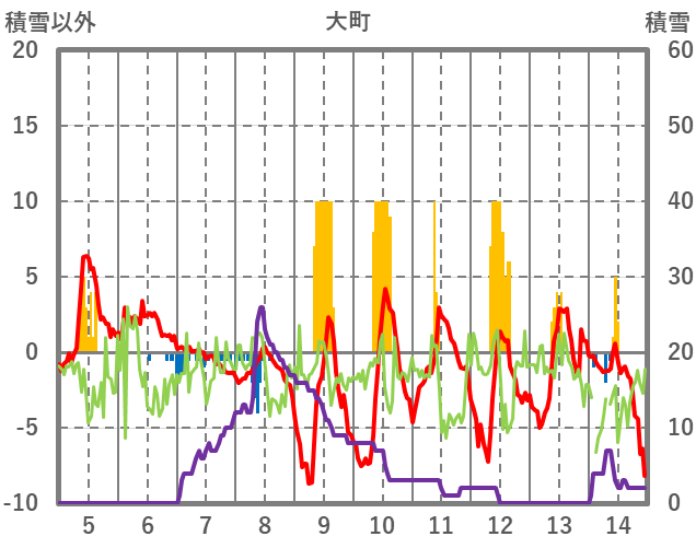 | 日 | 時 | 気温 | 降水 | 風向/風速 | 日照 | 積雪 | 降雪 |