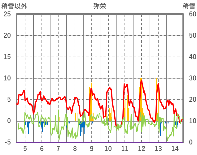 | 14 | 5.6 | 0 | NNW/3.5 | 6 | 0 | ||