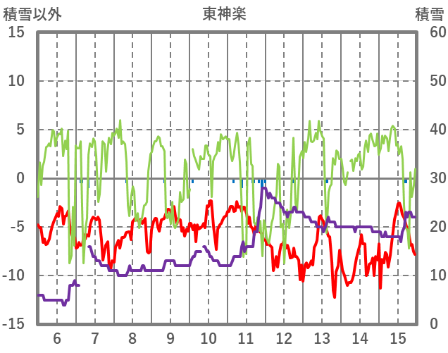 | 日 | 時 | 気温 | 降水 | 風向/風速 | 日照 | 積雪 | 降雪 |