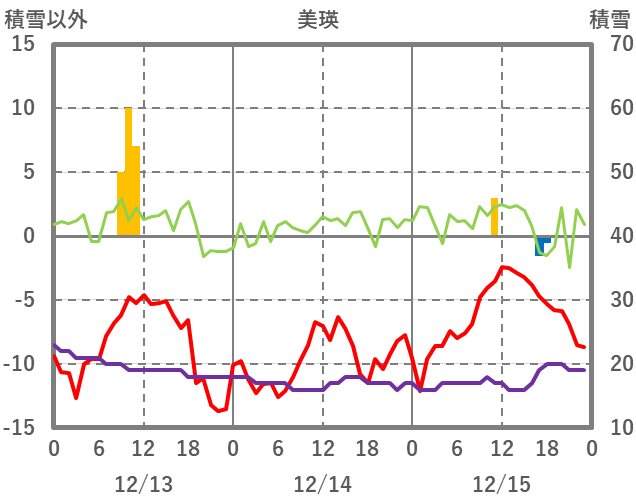 | 日 | 時 | 気温 | 降水 | 風向/風速 | 日照 | 積雪 | 降雪 |