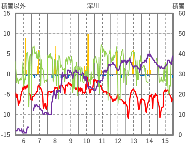 | 日 | 時 | 気温 | 降水 | 風向/風速 | 日照 | 積雪 | 降雪 |