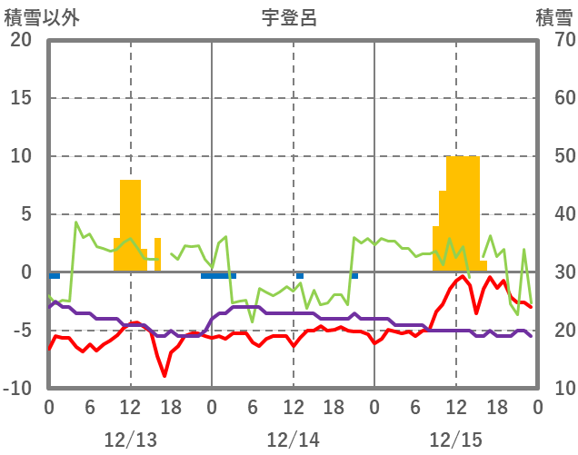 | 日 | 時 | 気温 | 降水 | 風向/風速 | 日照 | 積雪 | 降雪 |