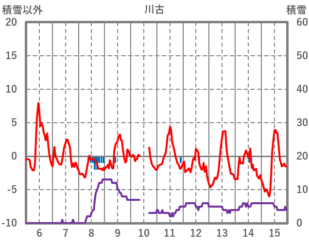 | 日 | 時 | 気温 | 降水 | 風向/風速 | 日照 | 積雪 | 降雪 |